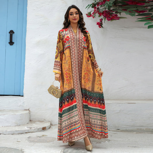 Women's Printed Hot Diamond Bat Sleeve Dress