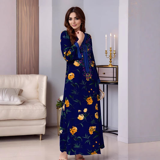 Printed Large-flowered Hot Diamond Chiffon Dress