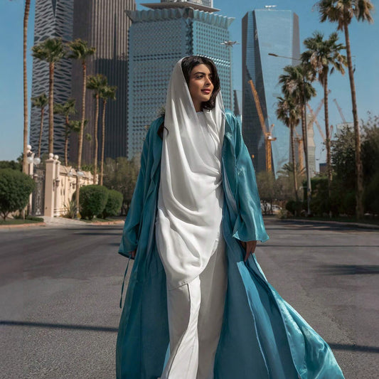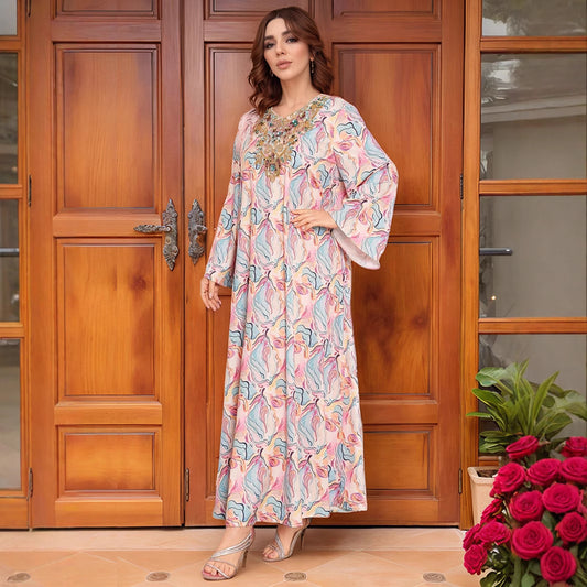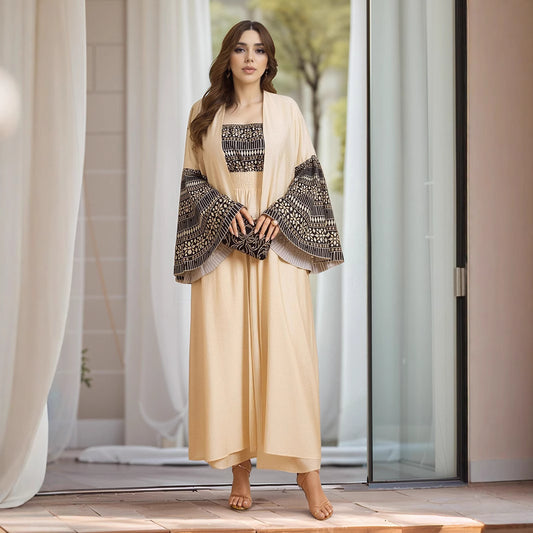 Dubai Chiffon Pleated Fan-shaped Sleeve Multicolored Dress