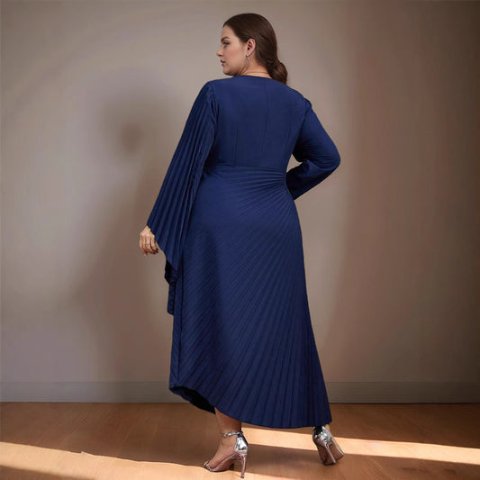 Women's Asymmetric Pleated Dress Set with Diamonds