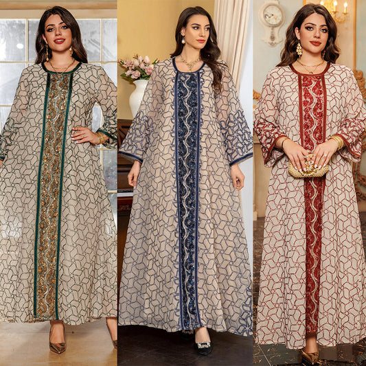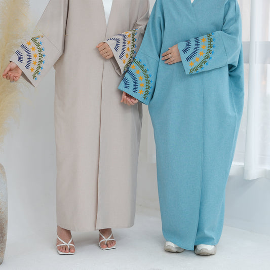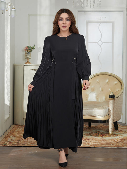 Women's Solid Color Shirt Dress Abaya with Pockets