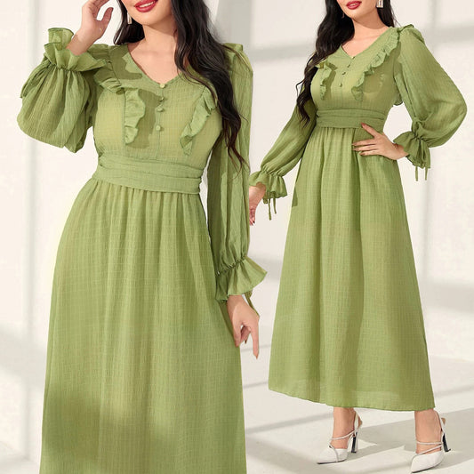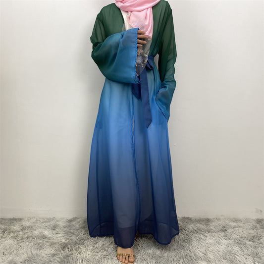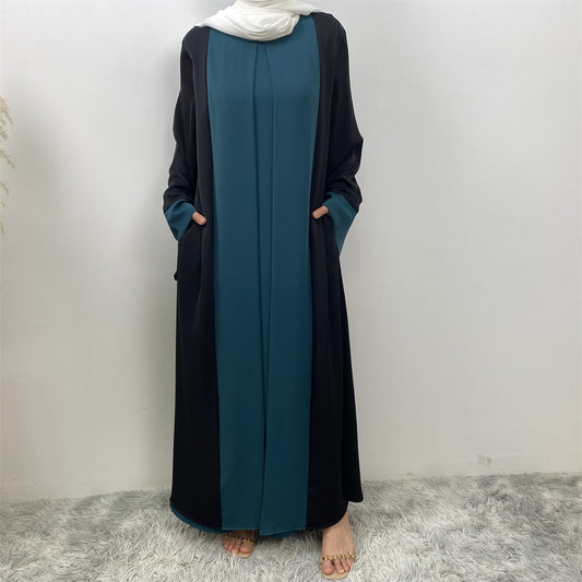 Muslim Patchwork Fake 2 Piece Abaya Dress