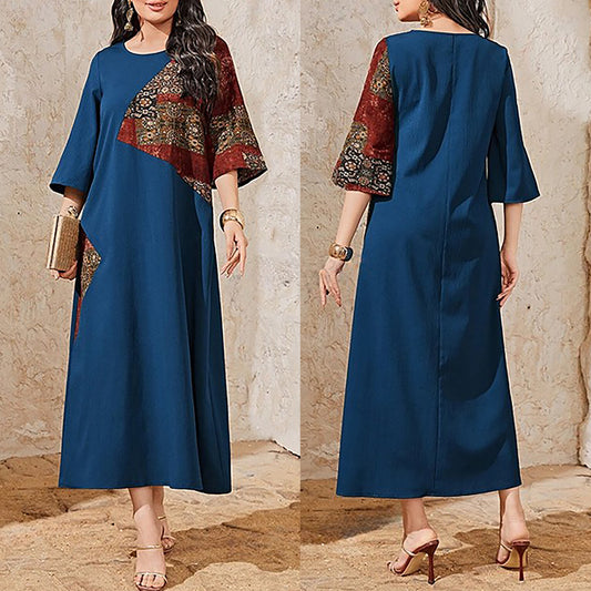 Women's Printed Patchwork Flared Sleeve Casual Dress