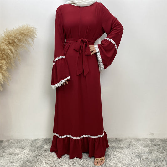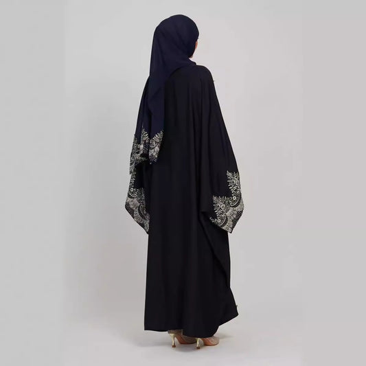 Lace Patchwork Batwing Sleeve Abaya Robe
