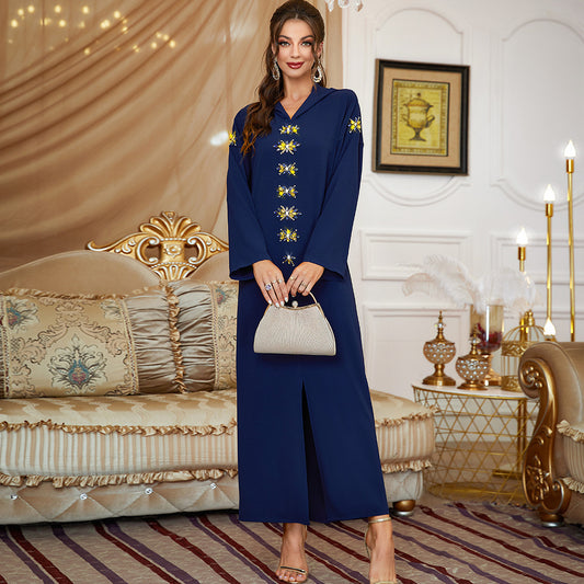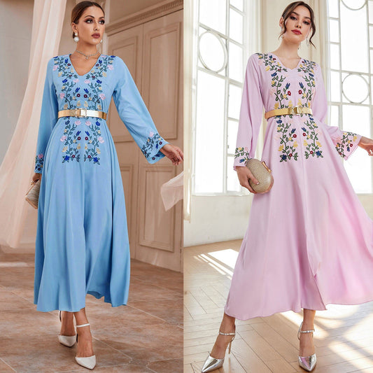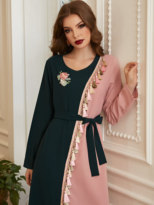 Women's Colorblock Fringe Handmade Floral Abaya Dress