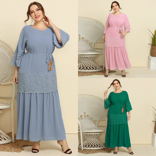 Women's Hooded Long Sleeve Hand-stitched Diamond Dress