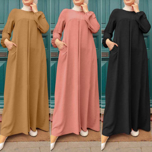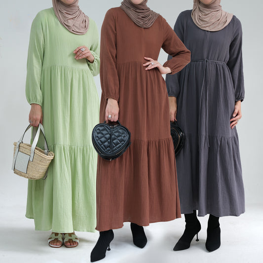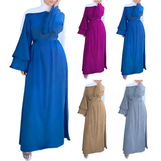 Women‘s Plain Elegant Double-layer Abaya Dress