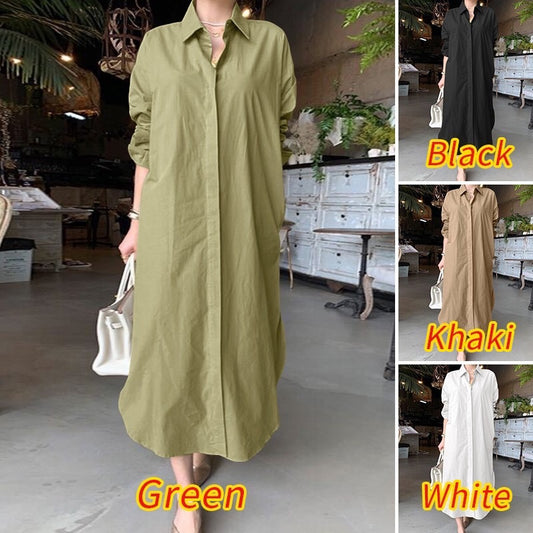 Solid Color Long Sleeve Casual Long Shirt Dress