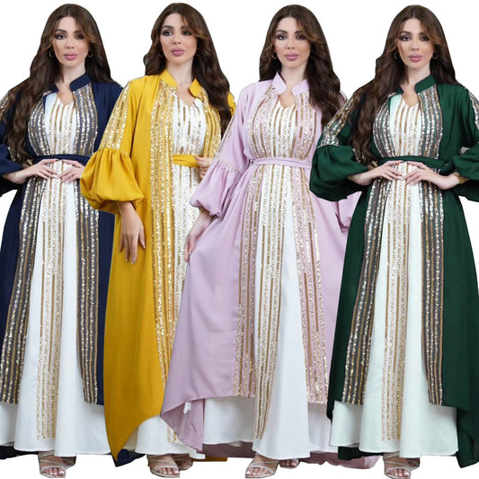 Muslim Diamond-studded Jalabiya Dress Two Piece Sets