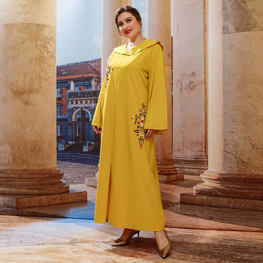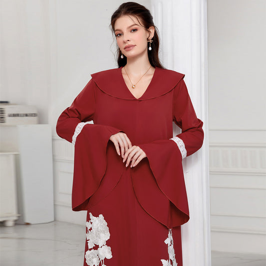 Women's V-neck Flared Sleeves Embroidered Robe Dress