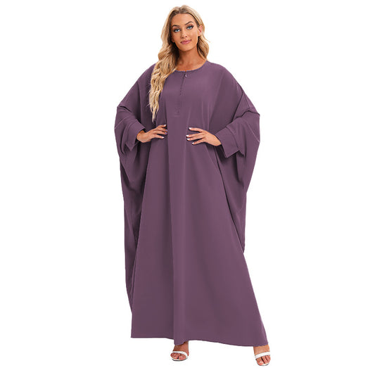 Plain Zipper Bat Sleeve Dress
