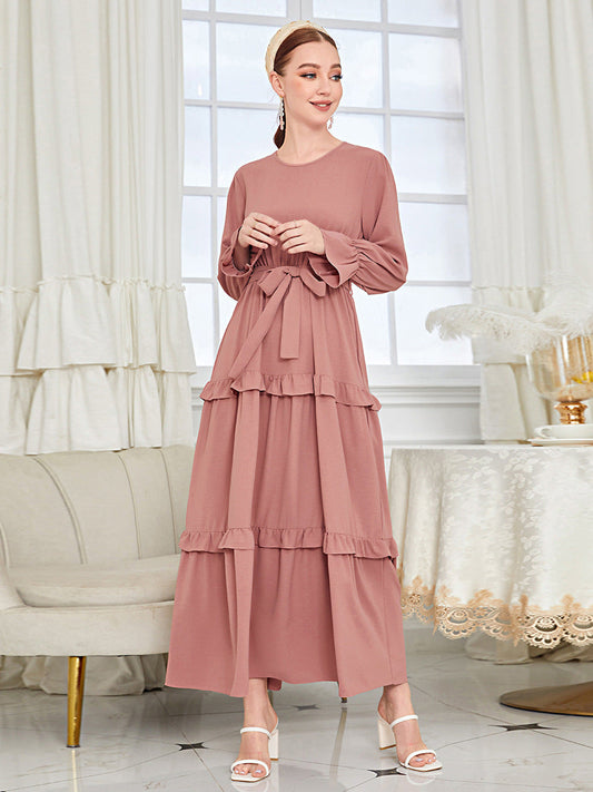 Solid Ruffled Dress with Belt
