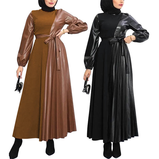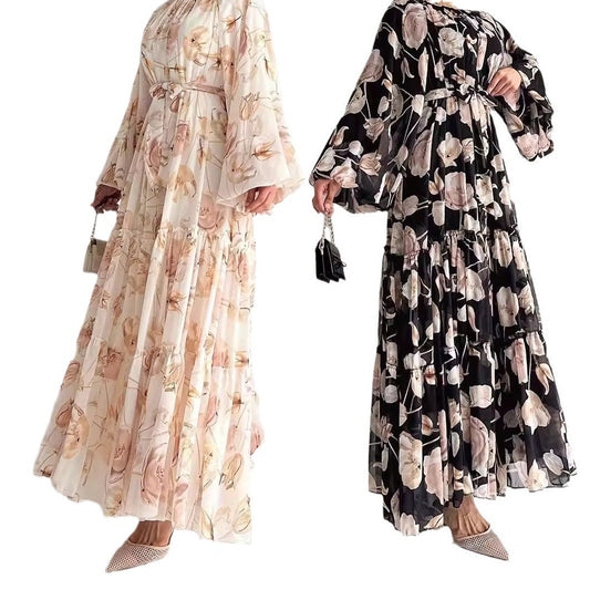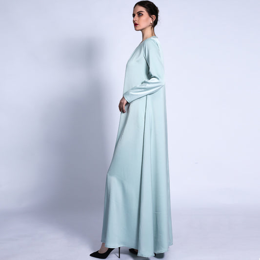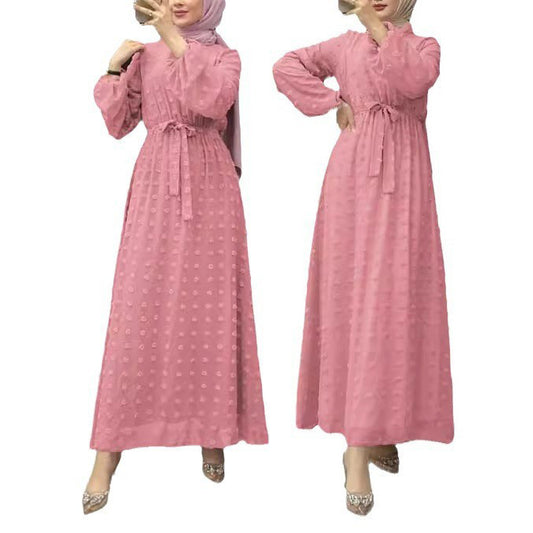 Women's Solid Color Jacquard Abaya Dress with Belt