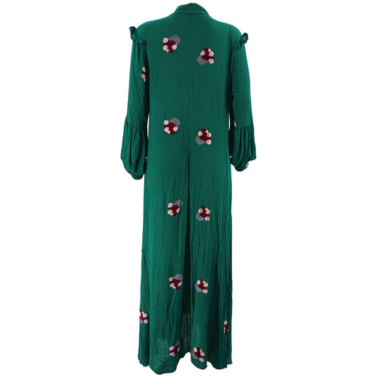 Embroidered Tie-necked Long-sleeved Elegant Dress