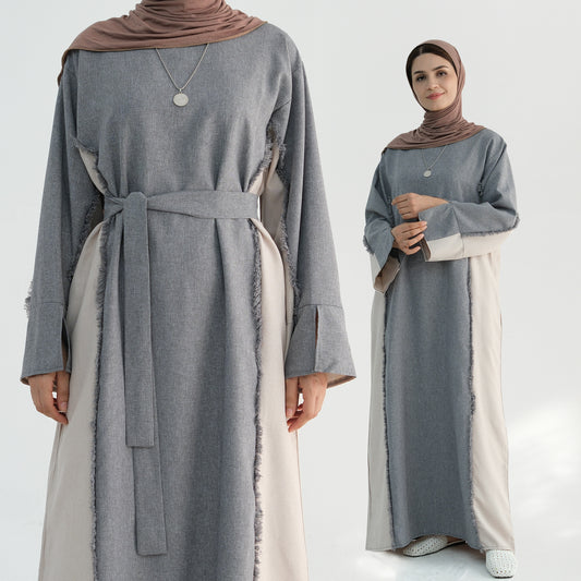 Women's Solid Color Shirt Dress Abaya with Pockets