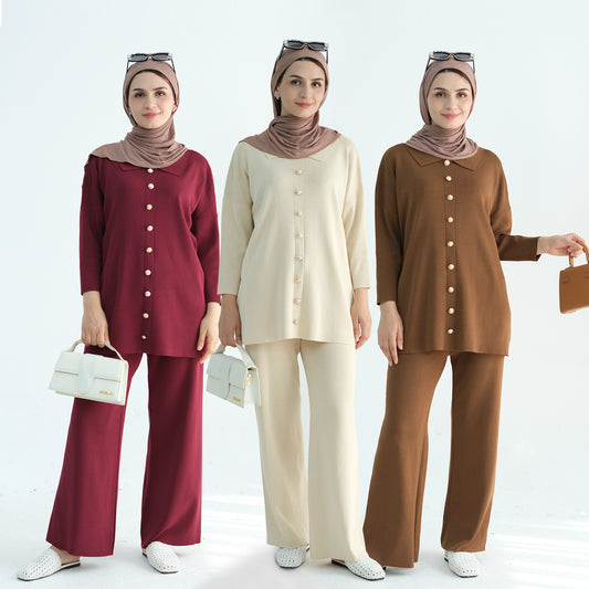 Thickened Knitted Sweater Wide-Leg Pants Trousers Two-Piece Set