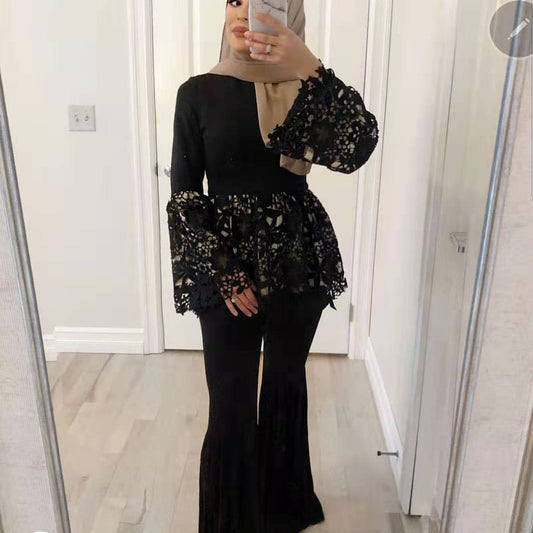 Printed Patchwork Pants + Top + Hat Three-piece Swimsuit Burkini