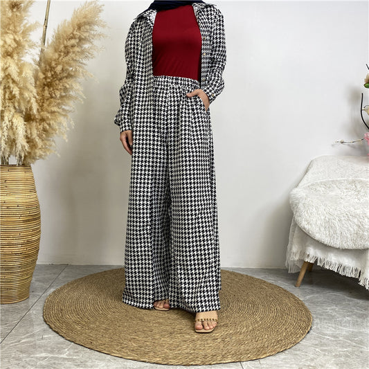 Printed Satin Button-down Robe+ Pocket Pants Two-piece Set