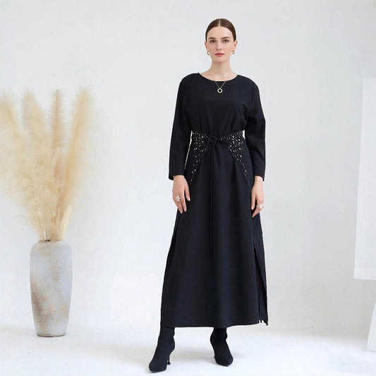Modest Two Piece Maxi Dress with Open Abaya and BeltRegular price $49.00 USDRegular priceUnit price / per$0.00 USDSale price $49.00 USD