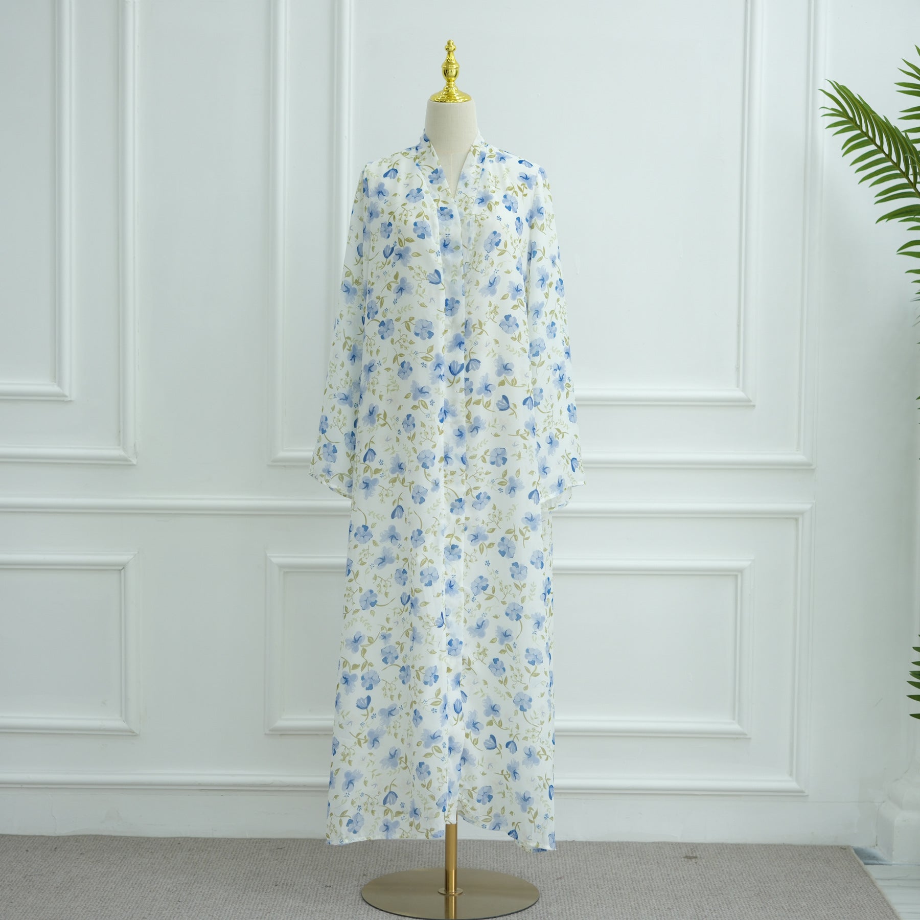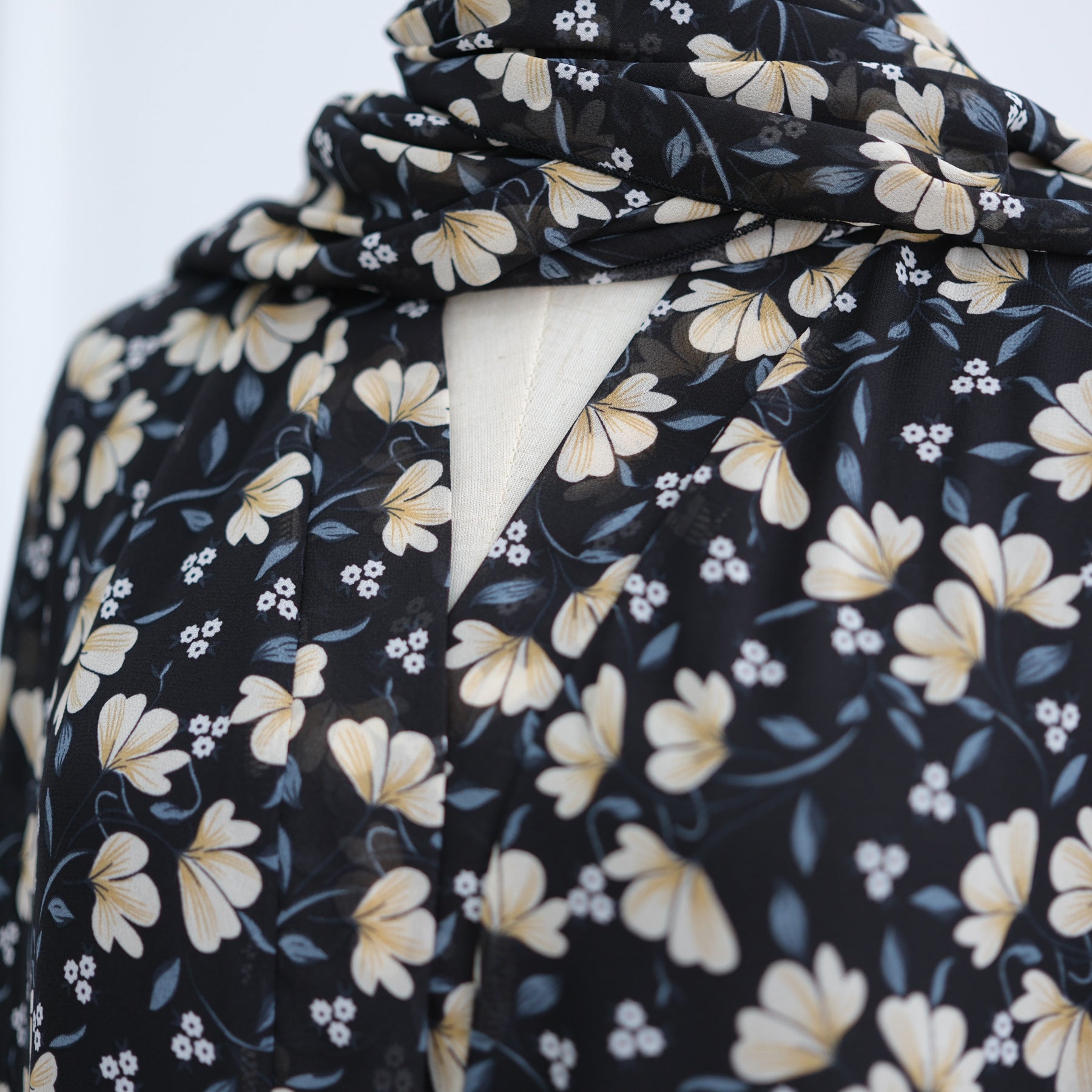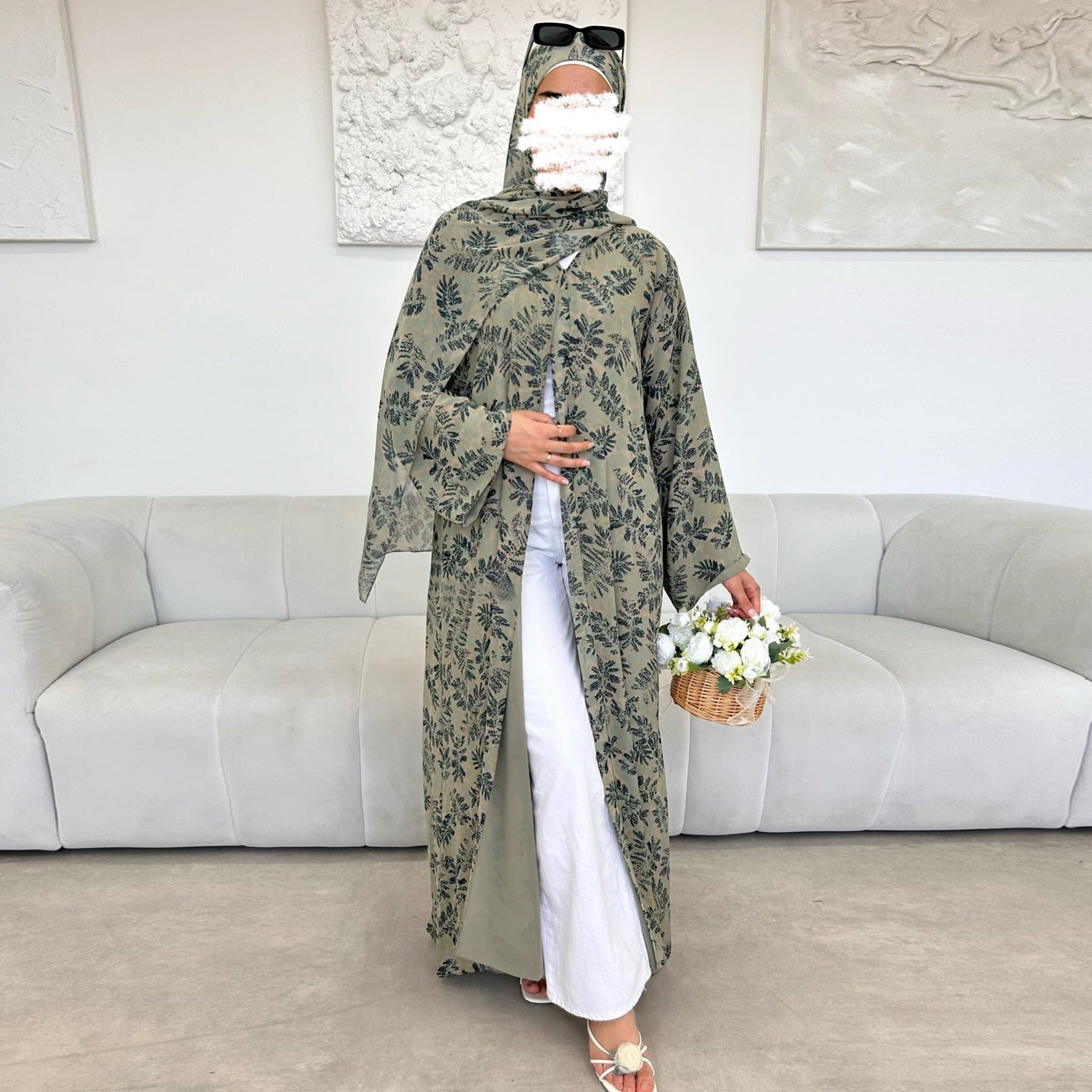Printed Hijab Set with Double Layer Chiffon Open Cardigan