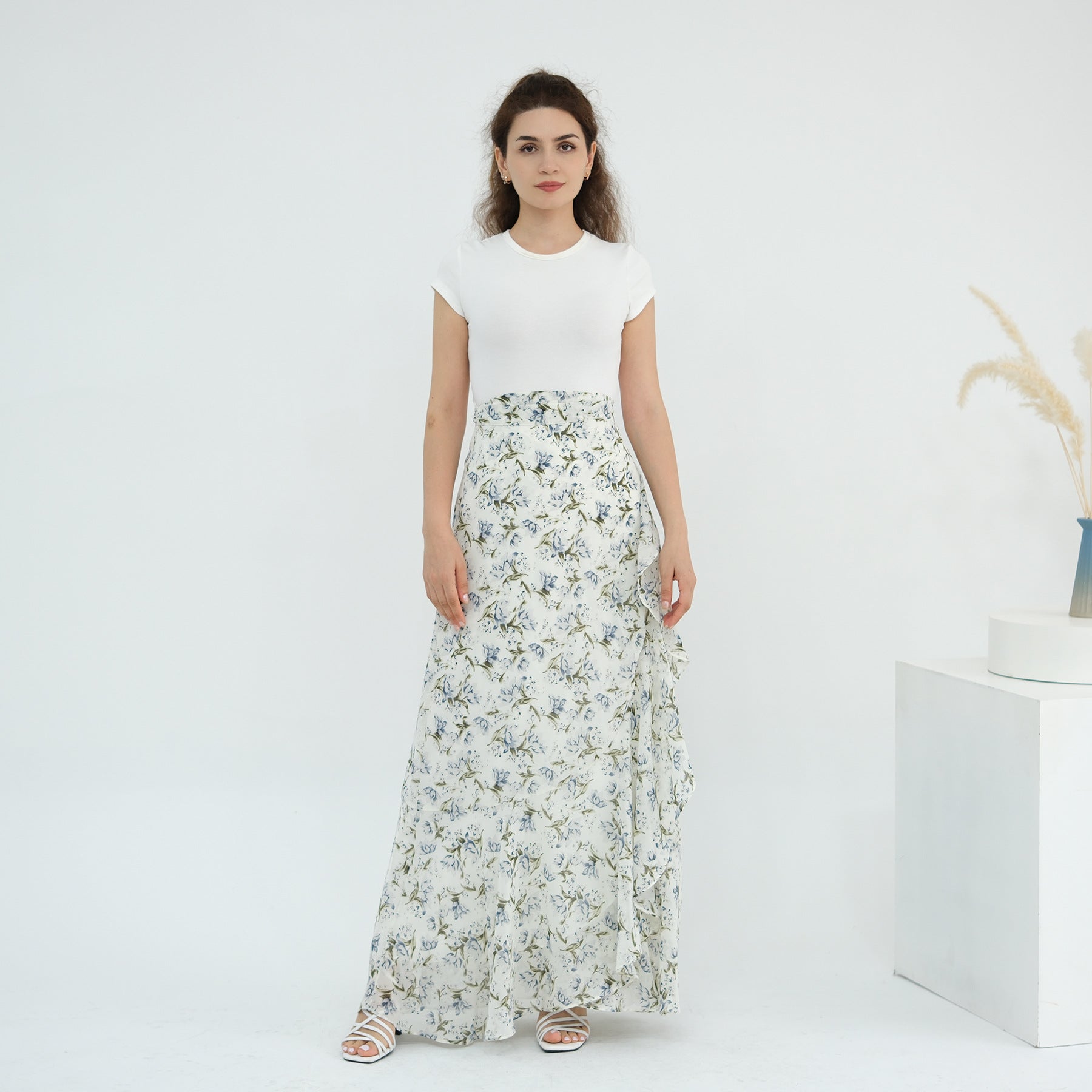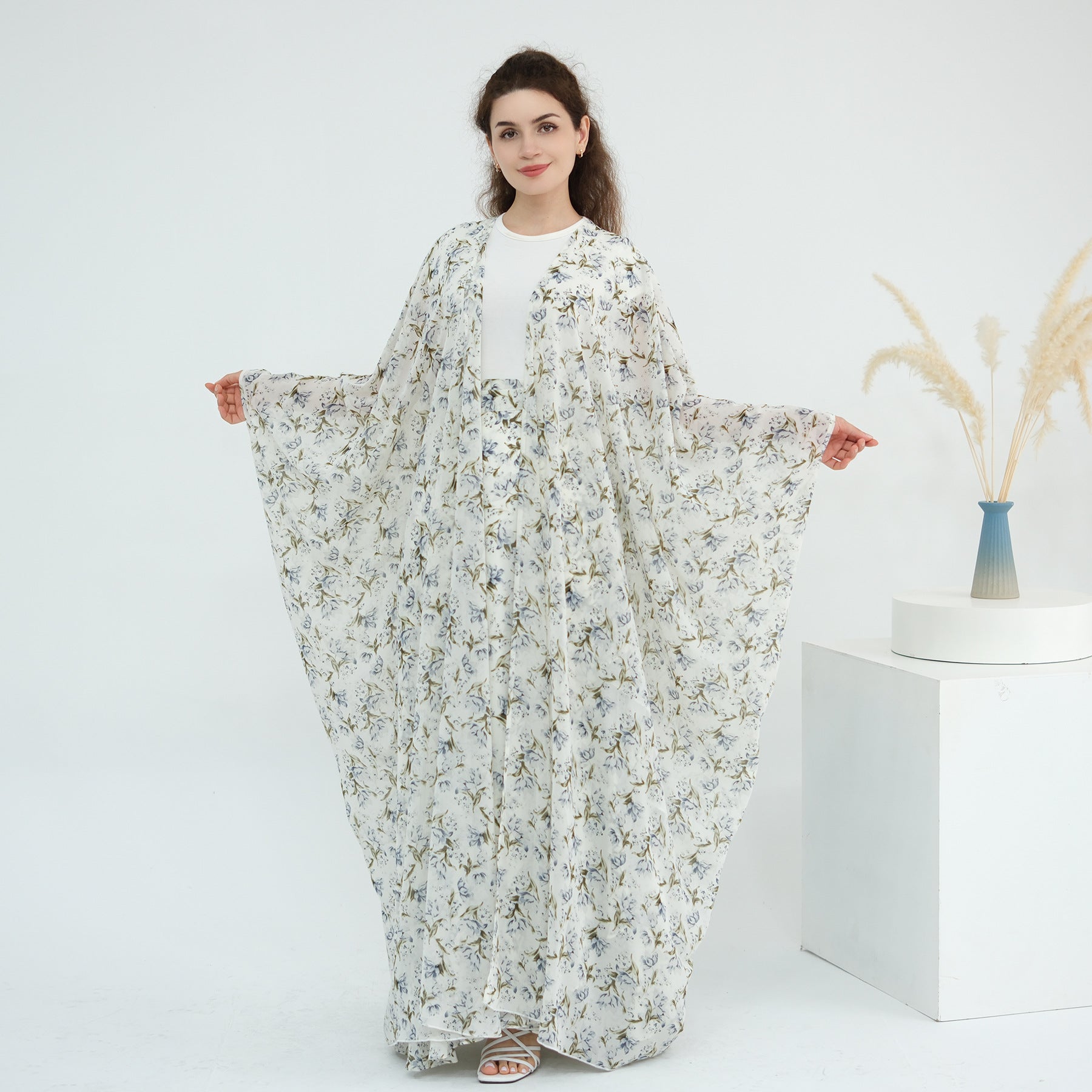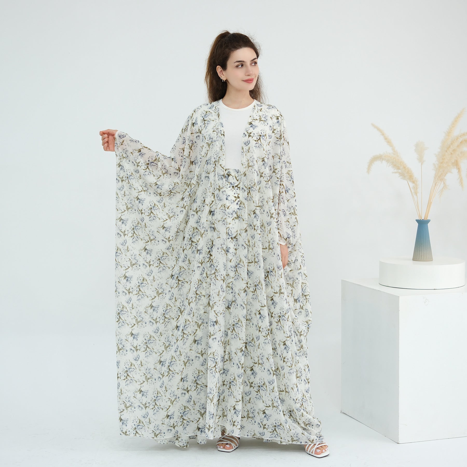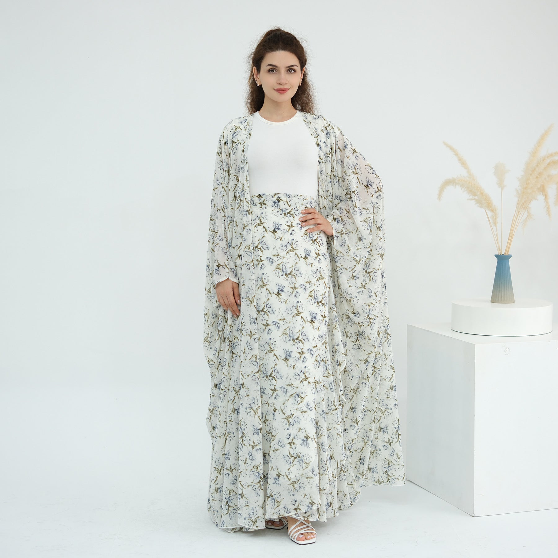 Floral Two Piece Set with Kimono Cardigan and Skirt