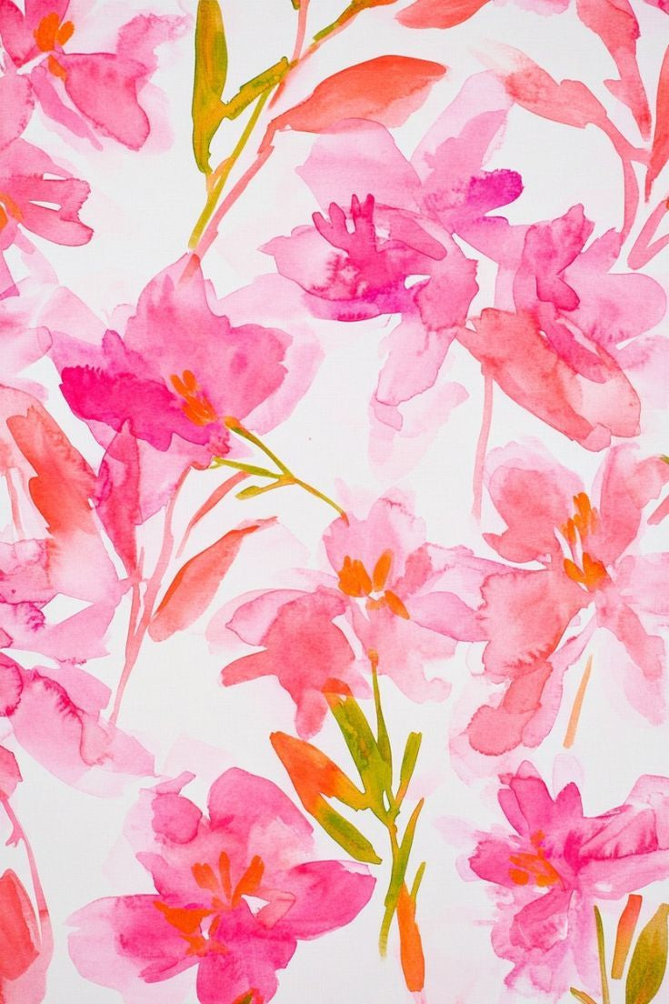 • Design: Watercolor-inspired florals in pink and coral tones on a white base