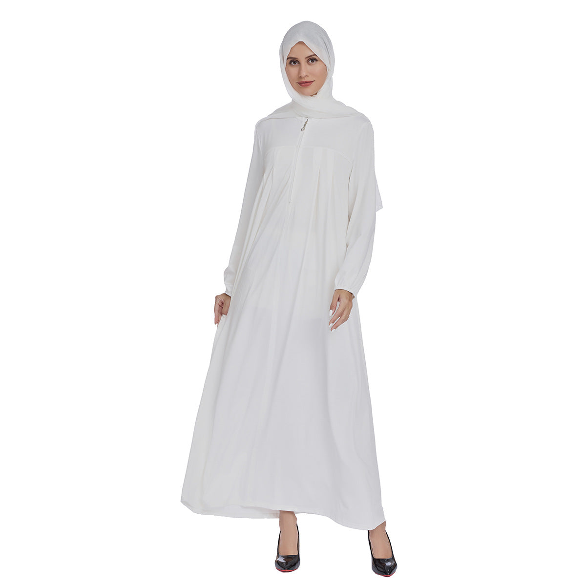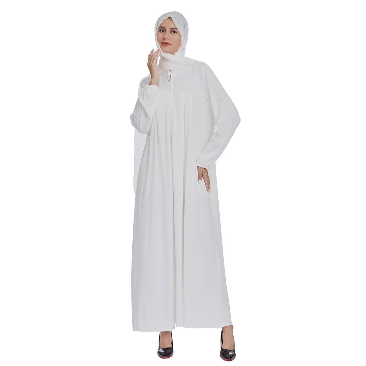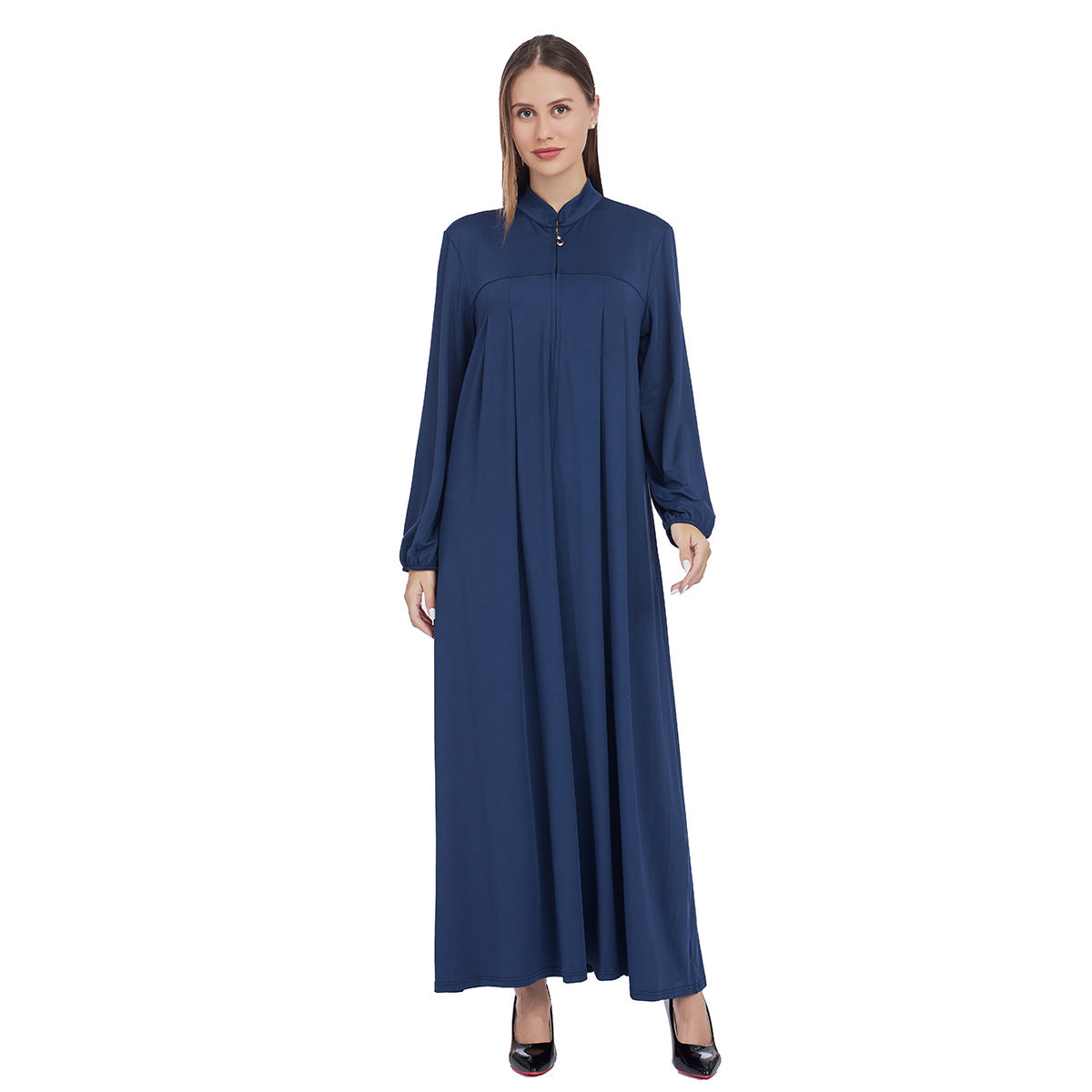 Stand Collar Maxi Dress with Pockets – Modest Long Sleeve Casual Abaya