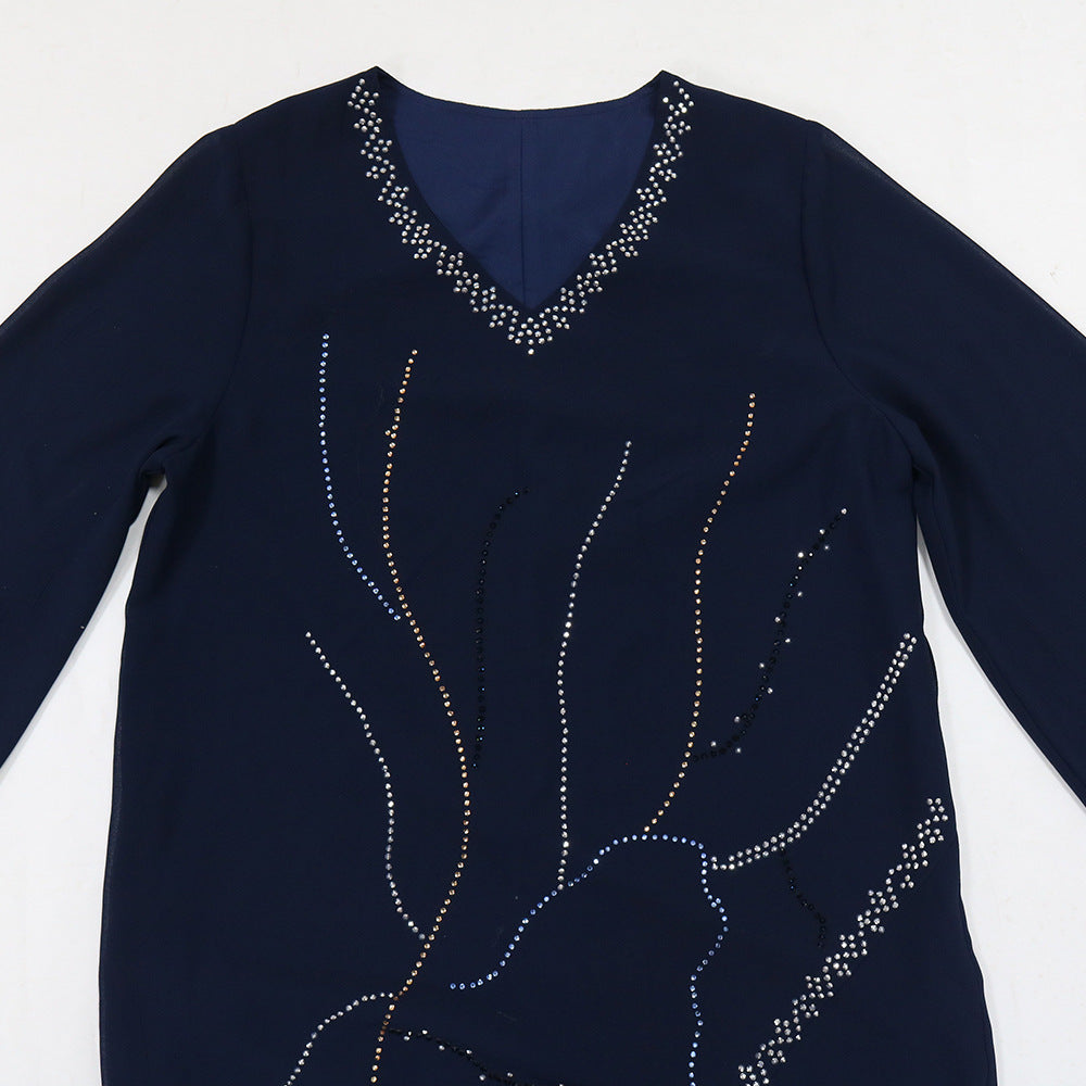 Women's Hot Diamond Chiffon Dress with Belt
