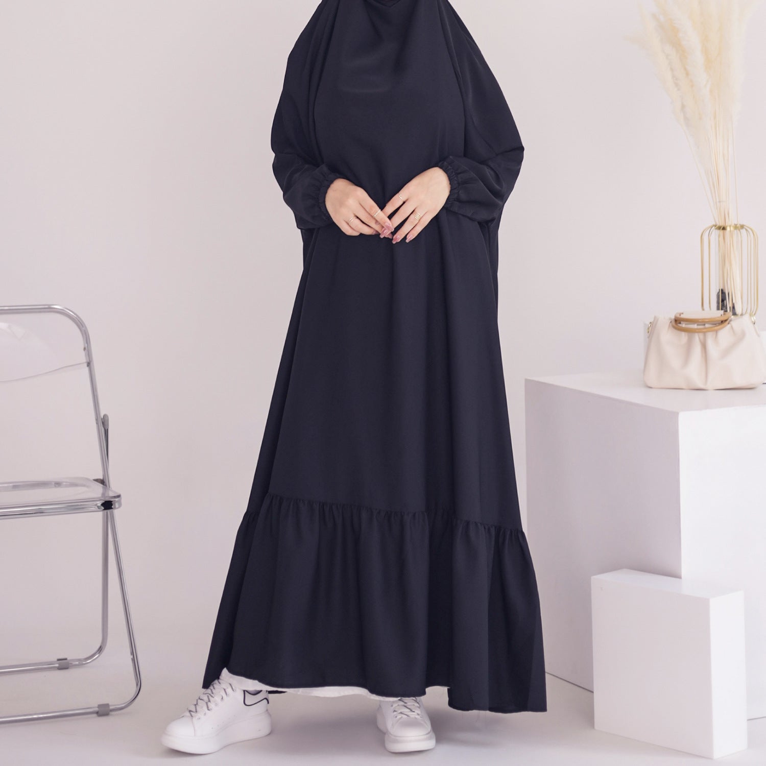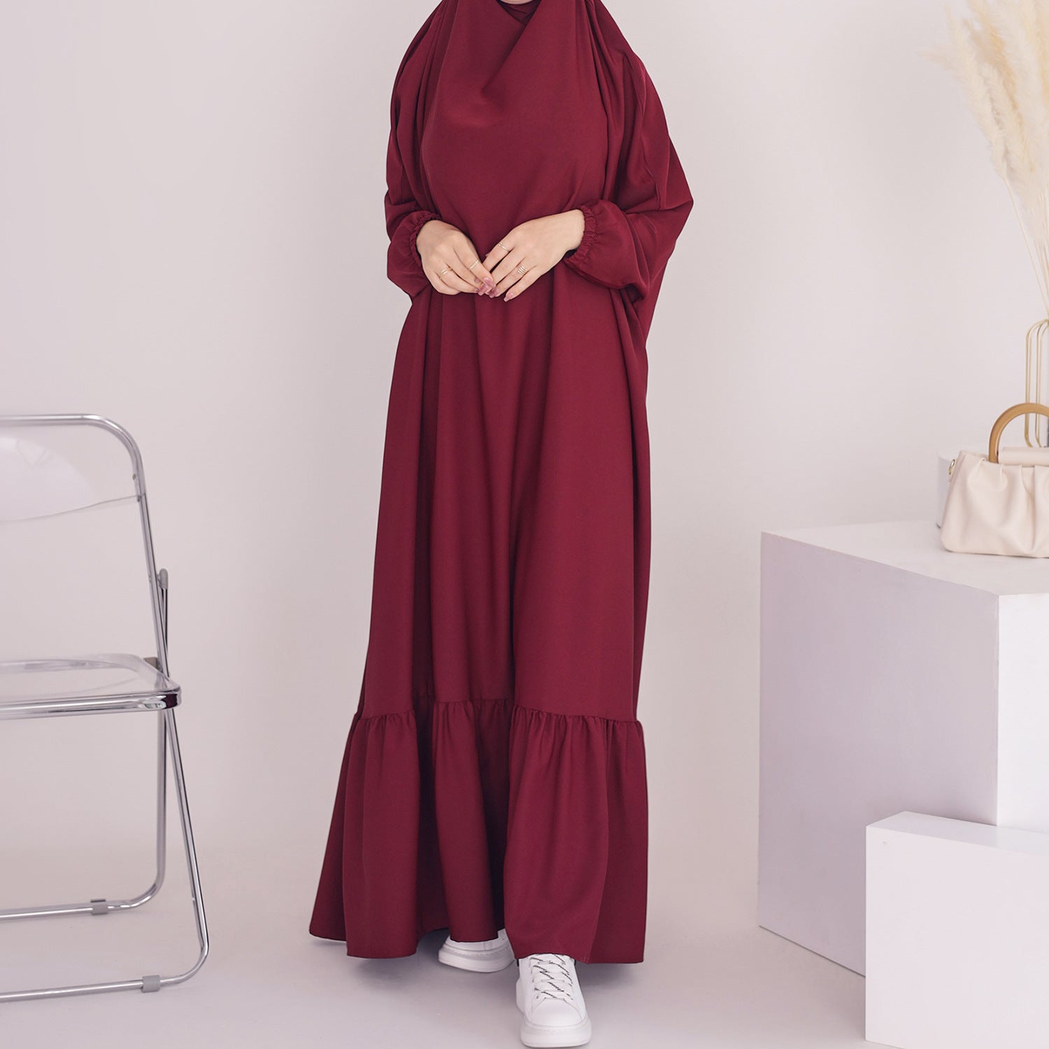 Women's Solid Color Robe Dress Jilbab Include Headscarf
